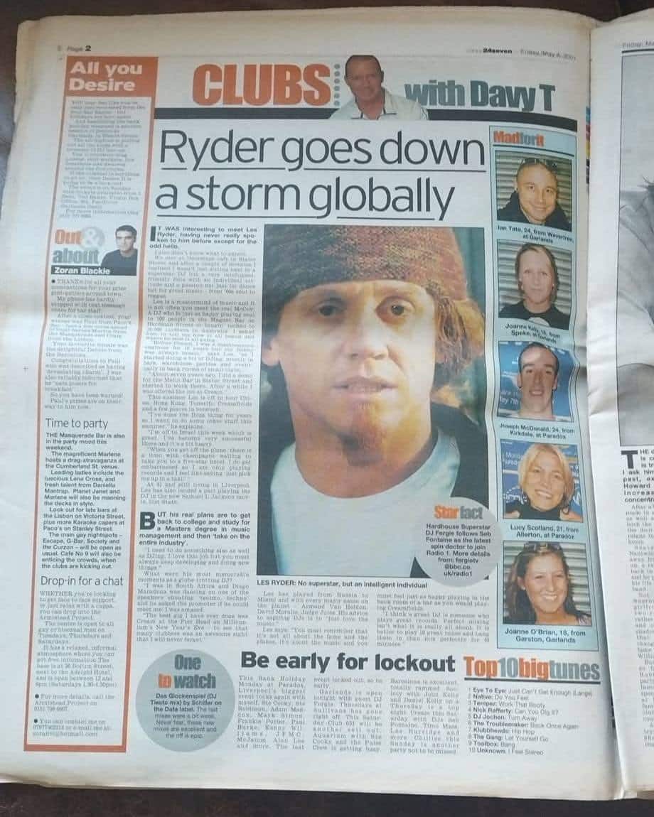 Les Ryder made his full debut at Cream, one of the worlds biggest clubbing brands in 1994 and has played at clubs and festivals all over the world as far afield as Australia, New Zealand, Russia, Israel, Argentina, Uruguay, China, Hong Kong, Israel, Beirut, and of course Ibiza…toured with The Prodigy and mixed and compiled the ‘Cream Separates’ album in 1996 which sold over 100,00 copies, Les has also toured the world with Carl Cox on the ‘ Cream / Ultimate World Tour’, the list goes on…