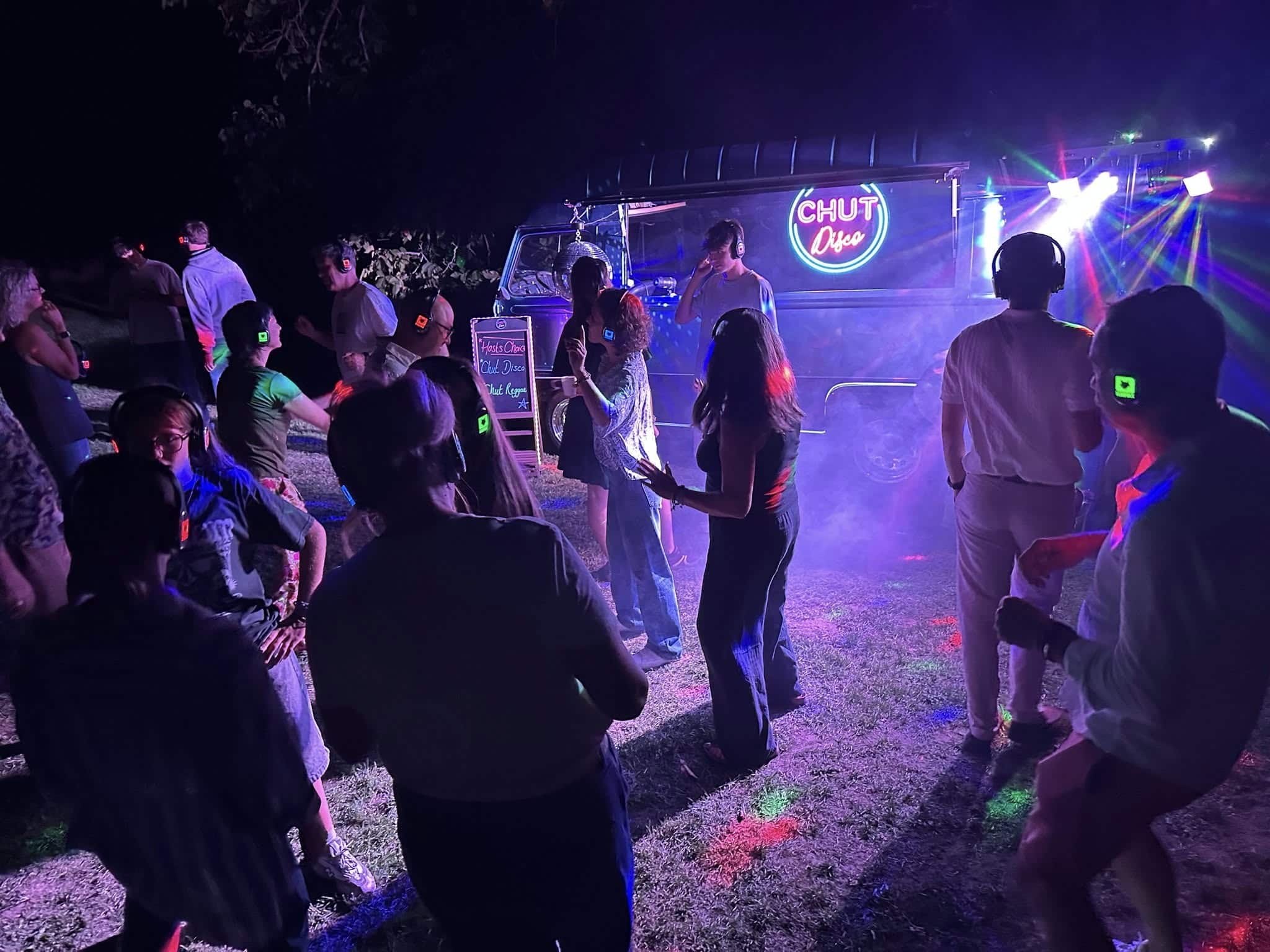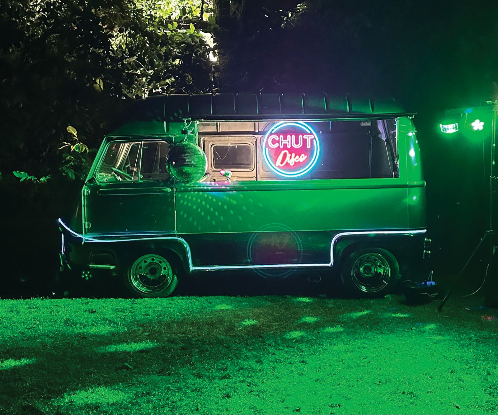 We have a delicious menu of playlists for you to chose from, curated to suit all tastes, or you can give us your own playlists to broadcast on the night. Add immersive disco lighting, great sound, and the unique vibe of our van, and you’ve got a complete party package. We bring the party without the noise!